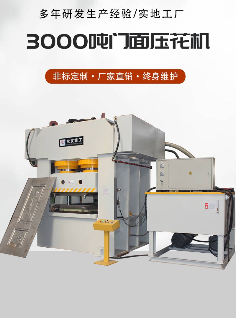 本机为我公司为某企业设计定做的一台3000吨门面压花液压机,也称3000t框式压花油压机。该设备是三梁四柱液压机系列中常见类型机器,常用于压制工艺和压制成形工艺,如:锻压、冲压、冷挤、校直、弯曲、翻边、薄板拉深、粉末冶金、压装等。除此以外,我公司还设计生产有粉末成型液压机、单臂液压机、金属拉伸压力机等。可以根据用户参数需求进行设计生产,能够确保大台面承压均匀。低噪音,节能环保,可降低用电量延长液压机的使用寿命,减少生产成本