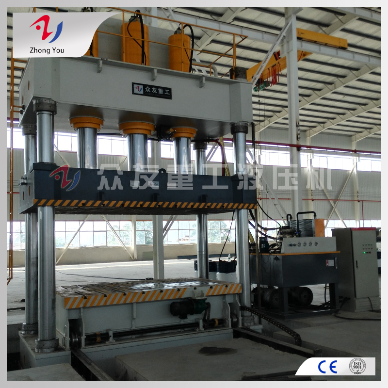 本机为我公司为某企业设计定做的一台1000吨带移动工作台四柱液压机,也称1000T金属液压成型油压机,工作台面可以移动。该设备是三梁四柱液压机系列中常见类型机器,除此以外,公司还设计生产有粉末成型液压机、框式液压机、金属拉伸液压机等。可以根据用户参数需求进行设计生产,能够确保大台面承压均匀。低噪音,节能环保,可降低用电量延长液压机的使用寿命,减少顾客生产成本。更多机器细节以及信息欢迎来电咨询
