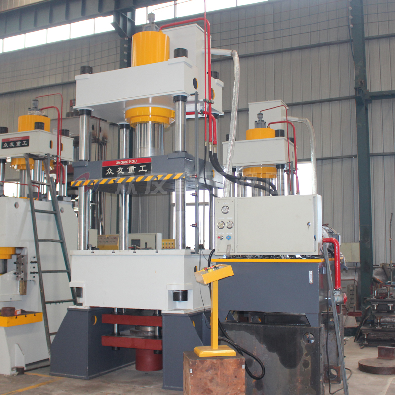 315吨风扇罩子拉伸液压机是山东九州体育ju11net有限公司自主研发生产设计的,设备由主机及控制机构两大部分组成,通过管路及电气装置联系起来构成整体。主机部分包括机身、主缸、限程装置等。控制机构包括液压泵站(动力系统)、电器箱、移动操纵台等组成。三梁四柱液压机广泛适用于紧固件厂、汽车维修、五金行业、车件公司、矿业、电子元件、表带、首饰、灯饰、照明、手机外壳、泵业、电器设备等行业