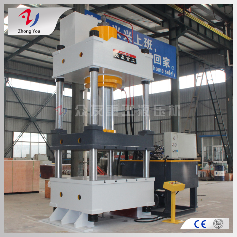 2、采用四柱导向结构,导向精度高,抗侧向力强,适用于压制精度要求高、不对称产品