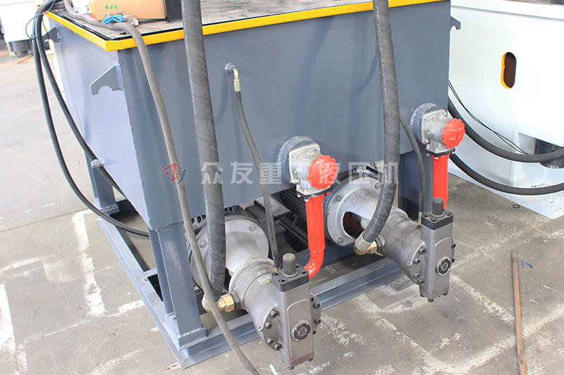 采用大流量插装阀,在泵的进油口设吸油滤器,以防杂质进入液压系统,以确保油路的正常运行;系统中有油温油位显示、空气滤清等装置;油箱为钢板焊接结构,底部备有放油和排污的螺塞;插入式液压专用电机,降低车间噪音