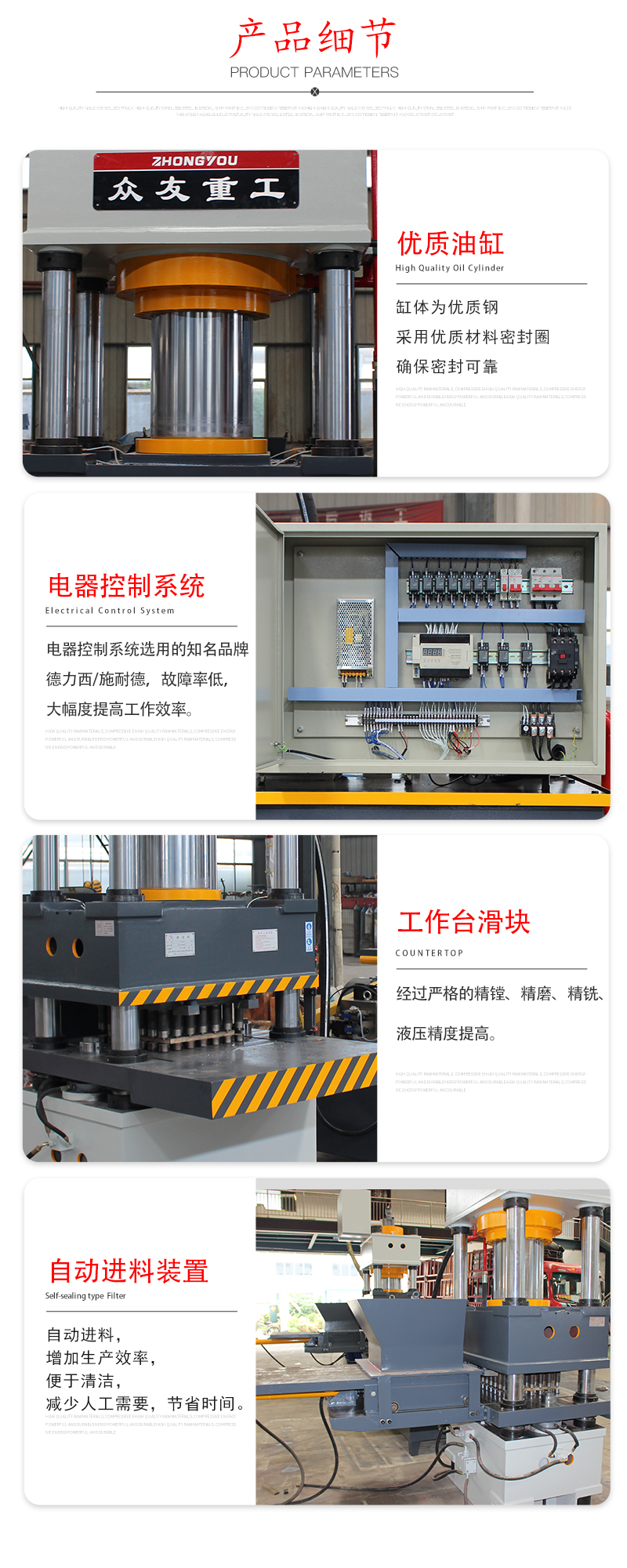 以下为630吨自动进料鱼饵压块成型油压机_630T粉末成型油压机机器特点: