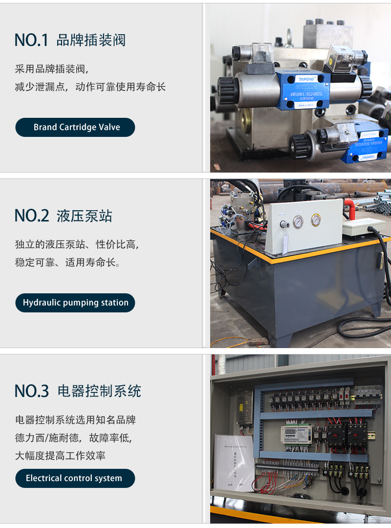 2、插装阀、电液比例阀的使用和独特的油路设计使液压系统完美无缺,即使在长期大负荷的情况下工作,系统也不会出现力不从心的现象