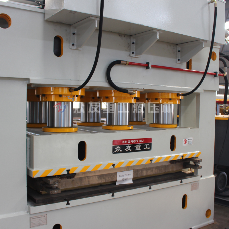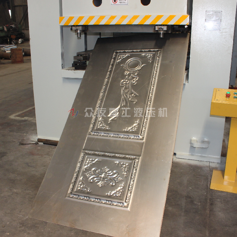 本机为我公司为某企业设计定做的一台1000吨门面压花液压机,也称1000t框式压花油压机,是防盗门、钢木门、室内门冲压成型门面压花专用液压机。该设备是三梁四柱液压机系列中常见类型机器,液压机常用于压制工艺和压制成形 工艺,如:锻压、冲压、冷挤、校直、弯曲、翻边、薄板拉深、粉末冶金、压装等。除此以外,我公司还设计生产有粉末成型液压机、单臂液压机、金属拉伸压力机等。可以根据用户参数需求进行设计生产,能够确保大台面承压均匀。低噪音,节能环保,可降低用电量延长液压机的使用寿命,另外,减少生产成本。本公司还有定制2000吨门面压花机,可以根据门的尺寸和花纹来定制不同的液压机