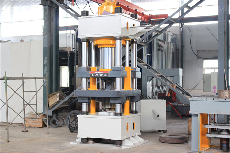 4.500T盐砖压块成型液压机通过操作面板选择,不仅可实现定程、定压两种冲压工艺,而且可实现有垫、无垫、顶出三种工艺工作循环;