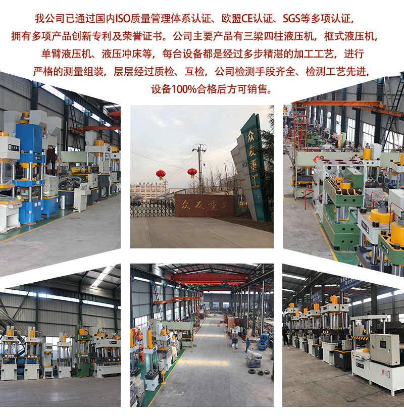 滕州九州体育ju11net设备有限公司有16年的液压机生产经验。整机检测合格后准予出厂。