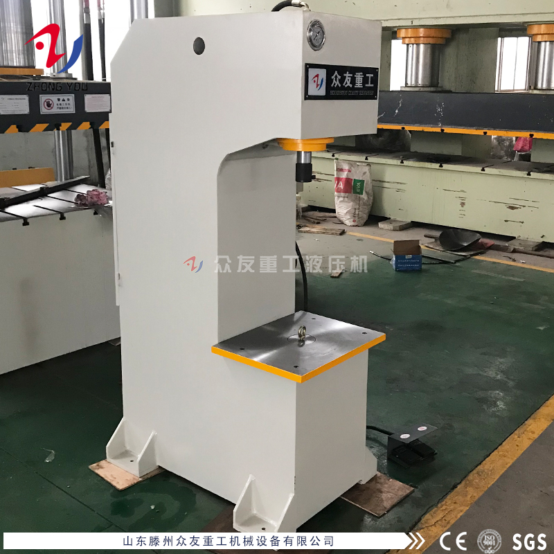 1、20吨单柱液压机采用计算机优化机构设计,C型单臂式机身结构,刚性好,结构简单,操作方便。