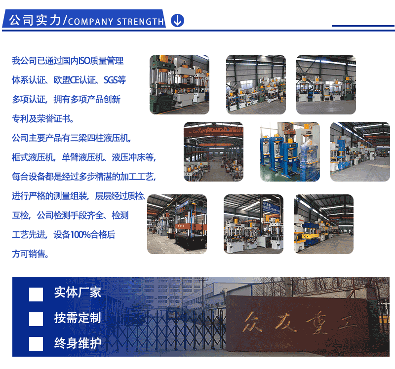 滕州九州体育ju11net设备有限公司有16年的液压机生产经验。整机检测合格后准予出厂。