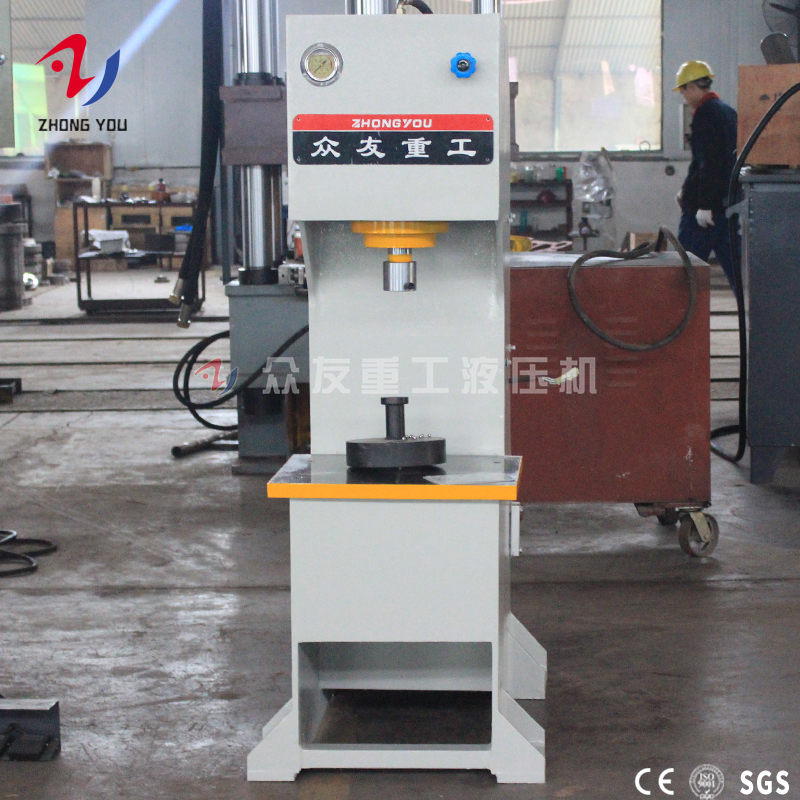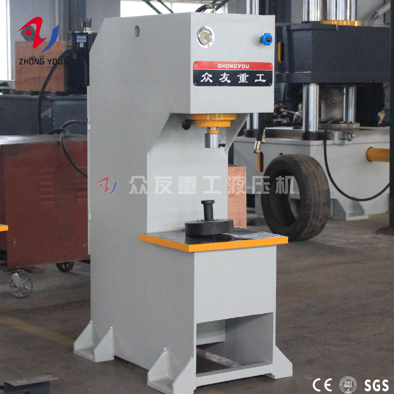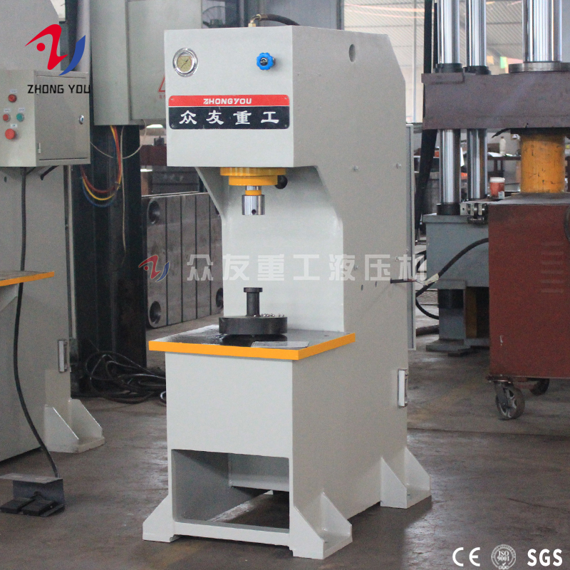 单臂液压机所用的工作介质的作用不仅是传递压强,而且保证机器工作部件工作灵敏、可靠、寿命长和泄漏少。单柱液压机对工作介质的基本要求是:①有适宜的流动性和低的可压缩性,以提高传动的效率;②能防锈蚀;③有好的润滑性能;④易于密封;⑤性能稳定,长期工作而不变质。本系列压力机全部采用钢板焊接结构,机器强度高,精度稳定并有长期的保持性,该机装有液压过载保护装置,利用三面空间,可拓宽工作范围,也可根据用户要求定做生产