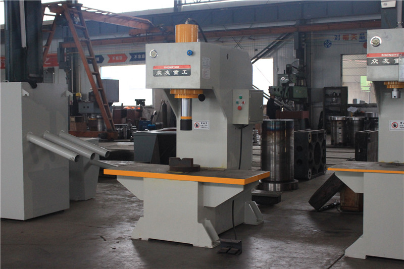 1、63吨单柱液压机采用计算机优化机构设计,C型单臂式机身结构,刚性好,结构简单,操作方便