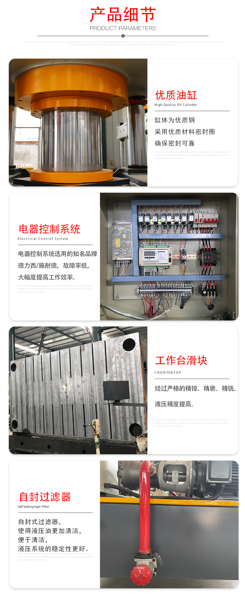 机身采用四梁四柱式结构,液压系统采用插装阀集成控制。