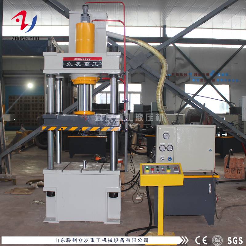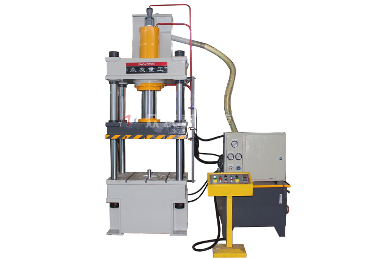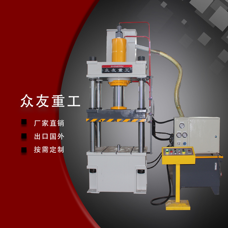 1、四柱式结构,机架与活动工作台导向精度高,刚性好,抗侧向力强,特别适用于压制不对称的产品;结构紧凑、性价比高 经济适用。