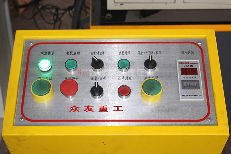 9、工作压力、行程可在规定范围内按工艺要求调节,采用按钮集中控制,可实现手动、半自动、自动三种操作方式。