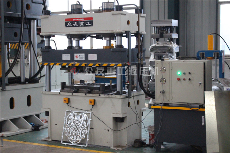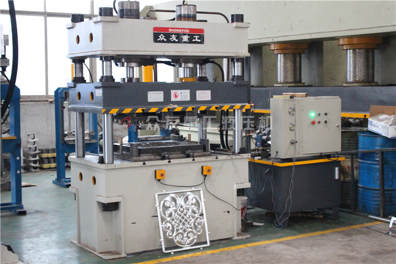 本机为我公司为巴基斯坦企业设计定做的一台500吨压花切花液压机,是防盗门、钢木门、室内门冲压成型门面压花专用液压机。该设备是三梁四柱液压机系列中常见类型机器,液压机常用于压制工艺和压制成形 工艺,如:锻压、冲压、冷挤、校直、弯曲、翻边、薄板拉深、粉末冶金、压装等。除此以外,我公司还设计生产有粉末成型液压机、单臂液压机、金属拉伸液压机等。可以根据用户参数需求进行设计生产,能够确保大台面承压均匀。低噪音,节能环保,可降低用电量延长液压机的使用寿命,减少生产成本,可以根据门的尺寸和花纹来定制不同的液压机