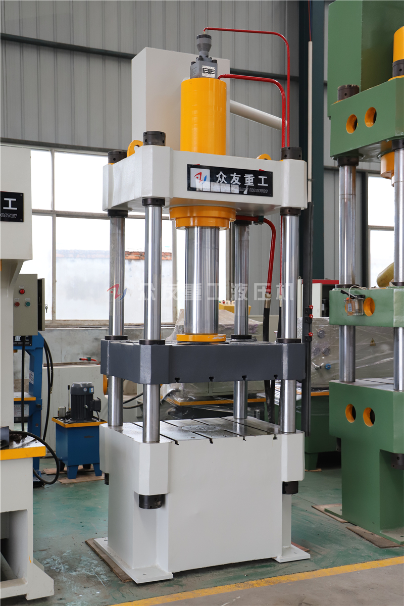 此台液压机是山东九州体育ju11net有限公司自主研发生产设计的,,设备由主机及控制机构两大部分组成,通过管路及电气装置联系起来构成整体。主机部分包括机身、主缸、限程装置等。控制机构包括液压泵站(动力系统)、电器箱、移动操纵台等组成,三梁四柱液压机广泛适用于紧固件厂、汽车维修、五金行业、车件公司、矿业、电子元件、表带、首饰、灯饰、照明、手机外壳、泵业、电器设备等行业,了解更多机器详情以及价格欢迎来电咨询