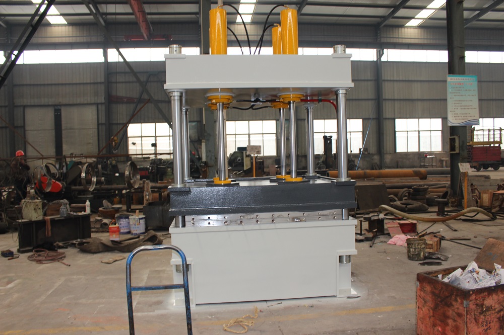 160吨四缸大台面加热液压机以镀锌板为基板,工作台、滑块为整体45#铸钢,镀锌板为基板,采用优质环保聚酯烤漆为面漆。