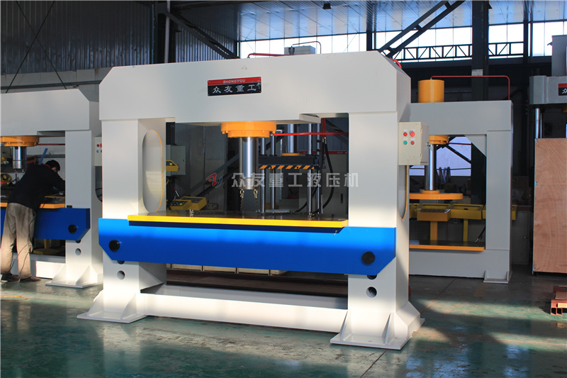 1、100吨框架式液压机采用全钢性结构,经振动时效处理使机械变形量小。