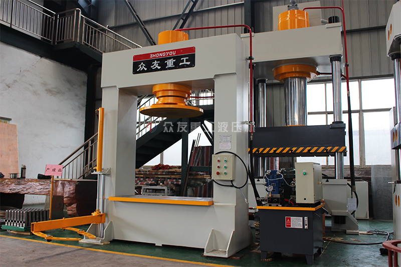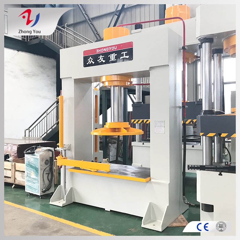 1、300吨框架式液压机采用全钢性结构,经振动时效处理使机械变形量小。