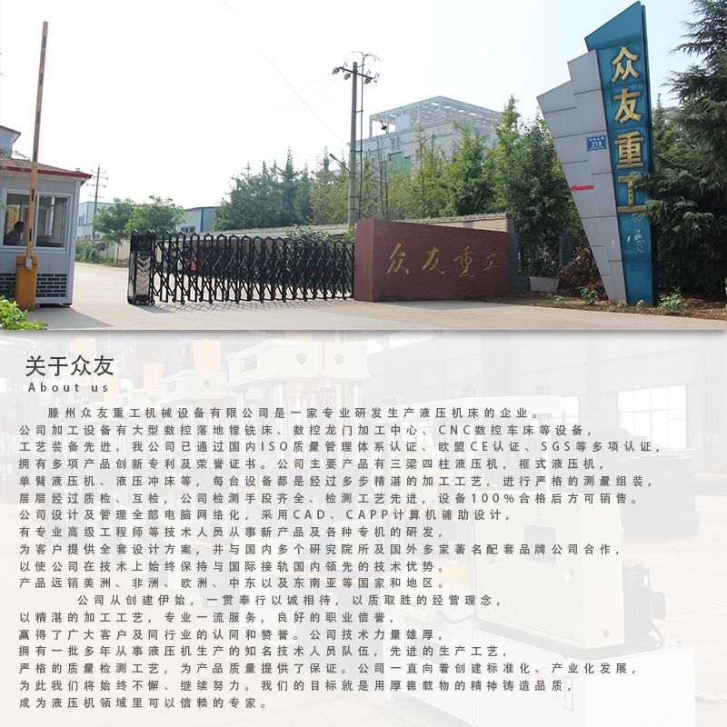 1.专业服务品牌价值14年专注开发、设计、制造各种款式油压机、液压机设备。专业的研发技术团队,可按客户需求提供量身定制的产品。高质量市场营销团队,确保快速高效地提供优质的服务。