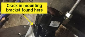 更换泵后,在安装支架中发现裂缝。这导致轴未对准,磨损了密封件。未对准的联轴器也会导致轴密封件过早磨损。