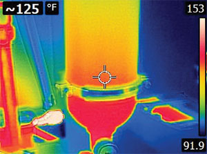 几年前,我在俄勒冈州上完一门课程后,一名学生让我看一看运行非常热的系统。他一点也不夸张,因为当用红外热像仪对水库进行拍摄时,它显示出了320华氏度的温度。