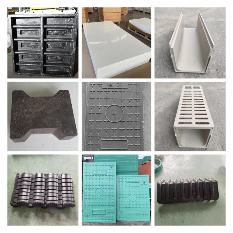 配备了电加热板、安全栓、水冷、温控、PLC;电加热板用于提供压制过程中所需的热量,PE沙子瓦能够均匀受热并达到理想的成型温度;安全栓是设备的重要安全装置,用于防止在液压机工作过程中因意外情况导致的压力突然释放,从而保护操作人员和设备的安全;水冷系统用于冷却液压机在工作过程中产生的热量,温控系统用于精确控制电加热板的加热温度,以及监测和调节设备的整体温度,确保压制过程中的温度稳定;PLC(可编程逻辑控制器)是设备的核心控制系统,用于实现自动化控制和监测设备的运行状态。
